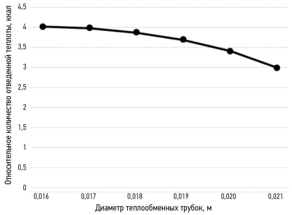 Изменение формы сечения теплообменных трубок от круглого сечения до овального приводит к уменьшению проходного сечения по охлаждающей воде, что снижает эффективность теплообмена за счет снижения теплового напора.