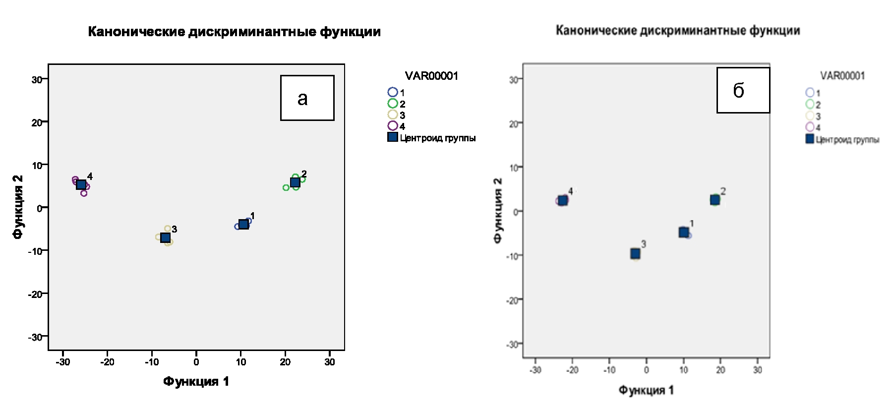 Методом математико-статистического анализа с использованием статистической программы SPSS версии 17.0 для Windows оценивали достоверность по T-критерию Стьюдента. В исследовании применялся дискриминантный анализ, расчет показателей канонической дискриминационной функции. При этом выборки были равномерные по количественному составу.