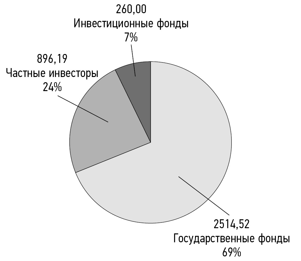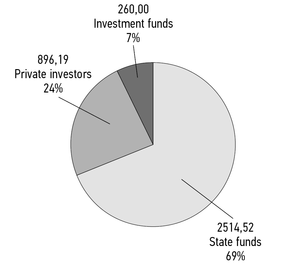 Fig. 4. Sources of Russian investment in artificial intelligence systems for medicine and healthcare (authors’ data), million rubles.