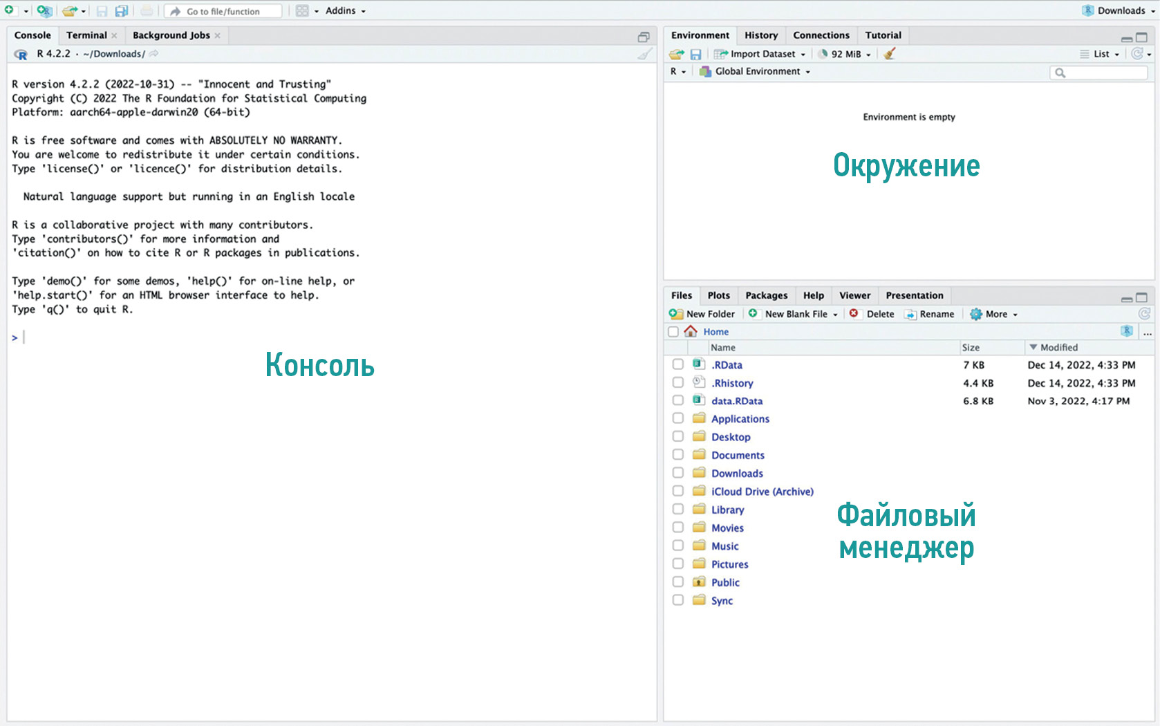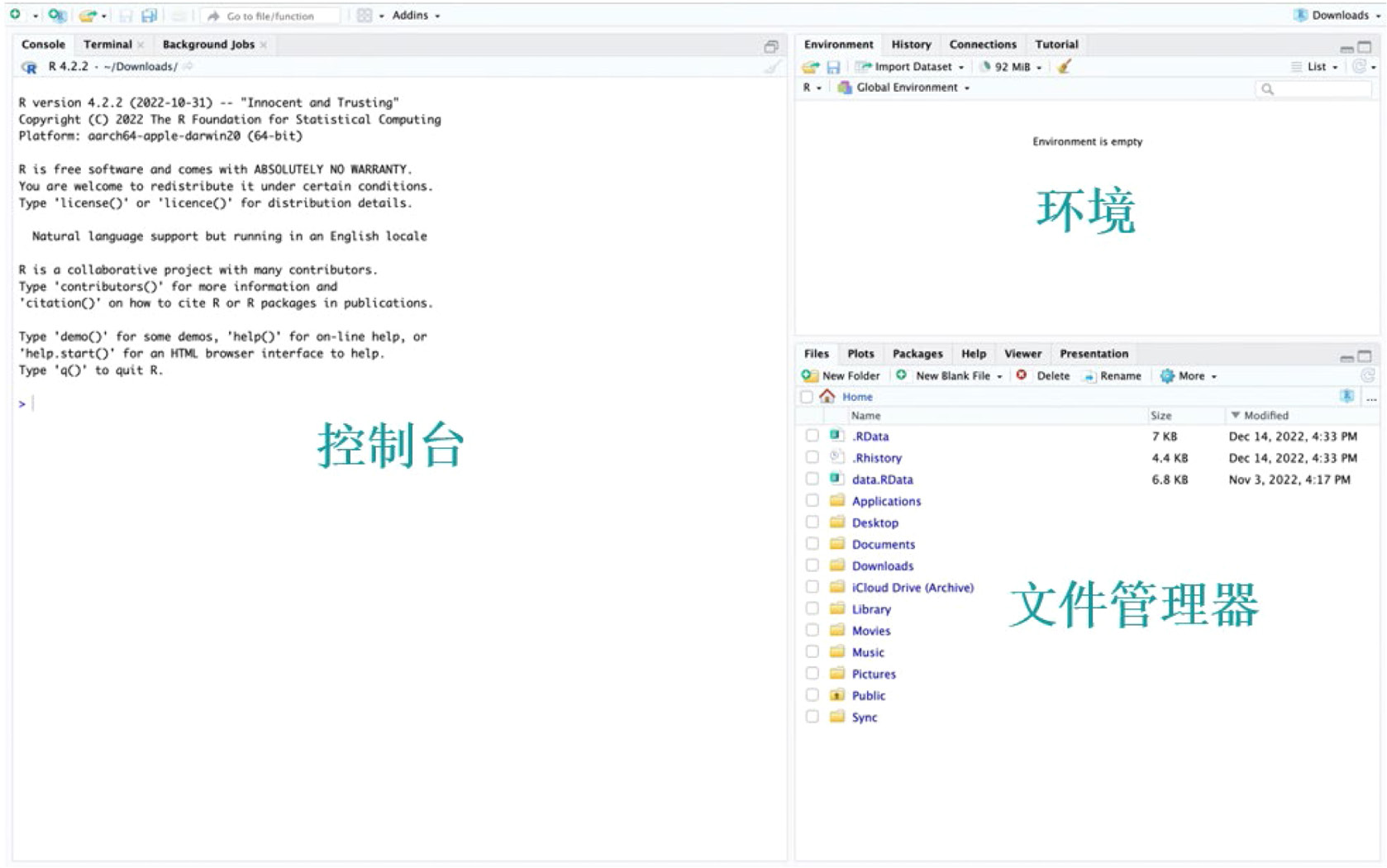 1. The basic Posit interface can be divided into the console, environment, and files (Fig. 1).