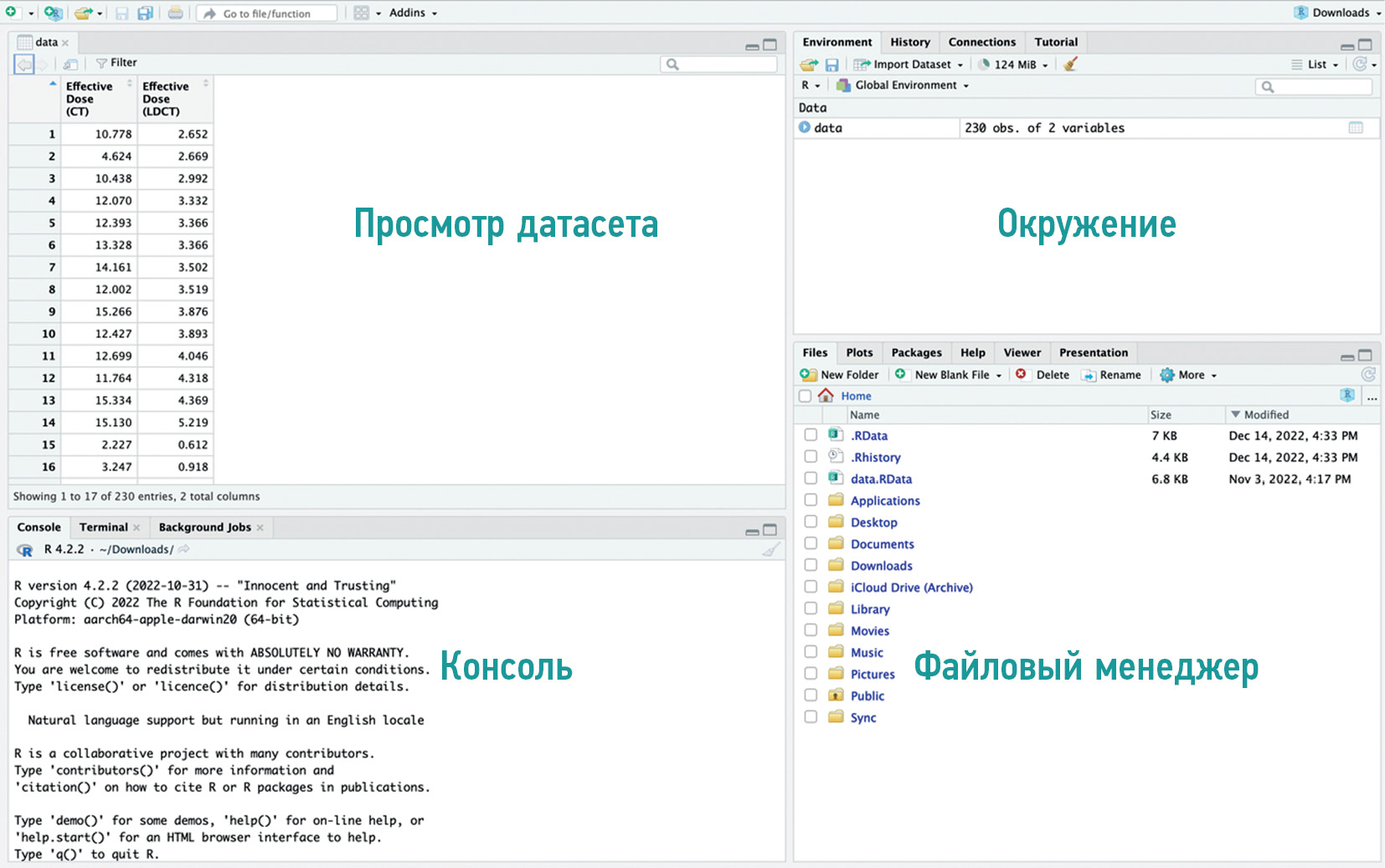 Competencies in statistical data processing are becoming increasingly important for modern scientists. The apparent advantages of open-source software for statistical analysis are its accessibility and adaptability. The programming language and the corresponding software R, available as a minimalistic console interface or a complete development environment RStudio/Posit, have the widest possibilities among free solutions.