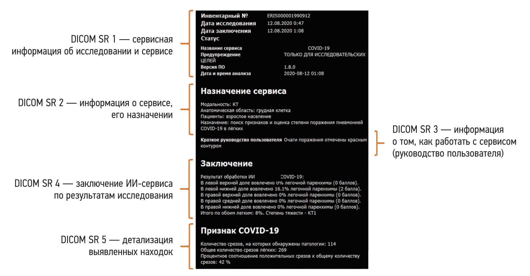 Fig. 3. Main components of the result of using artificial intelligence–based software with DICOM SR: A reference example.