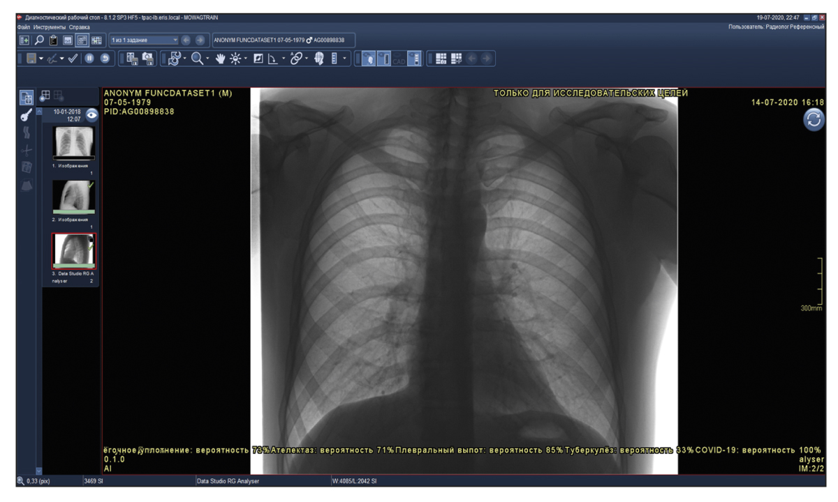 Global investment in developing software based on artificial intelligence (AI) technologies for medical diagnostics was $80 million in 2016 and $152 million in 2017; it is likely to grow continually [1]. In 2019, the Moscow government decided to conduct a large-scale scientific study (which is still ongoing in 2023) to evaluate the use of innovative computer vision technologies for analyzing medical images and further application in the Moscow healthcare system (hereinafter referred to as the Experiment).1