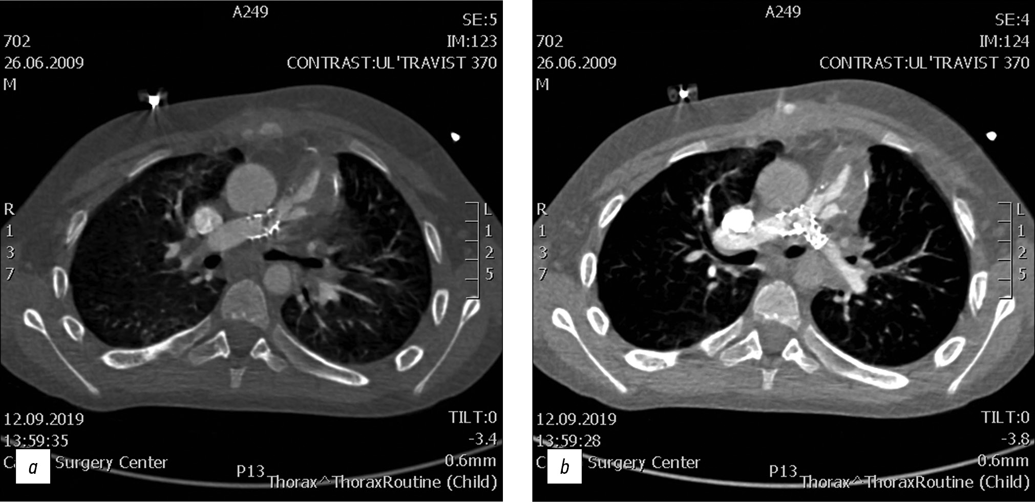 Fig. 1. CT of valve-containing conduit Contegra No. 16 and bilateral stents Palmaz Genesis XD 19-10.