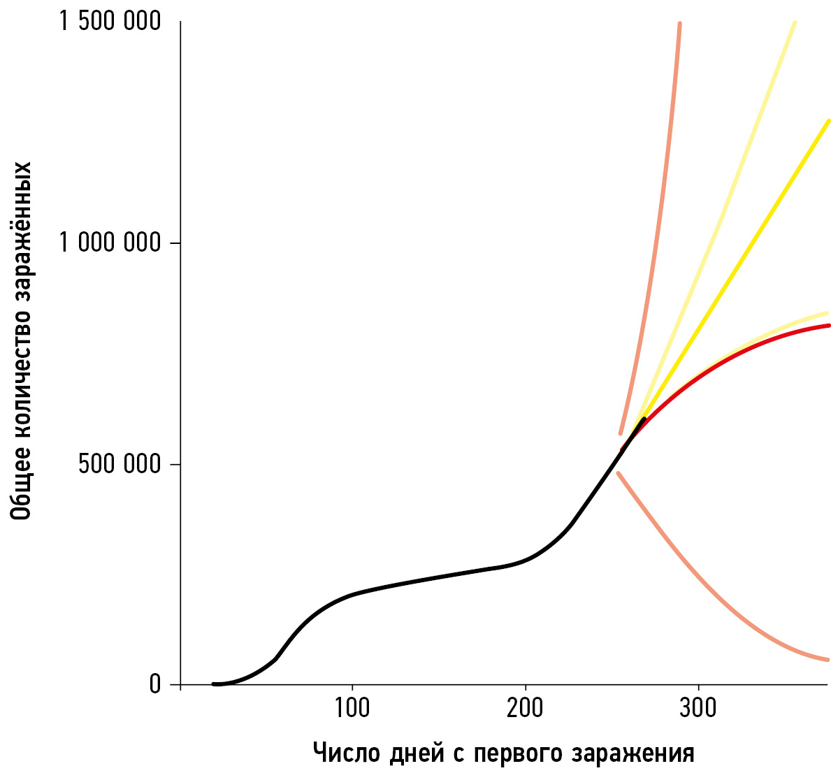According to the Russian Agency for Health and Consumer Rights website [8], the infection curve demonstrated exponential growth until July 1, 2020. After that, the number of daily new cases reached a constant level of 658±42 (Fig. 3).
