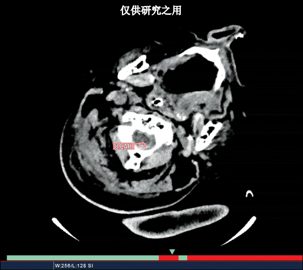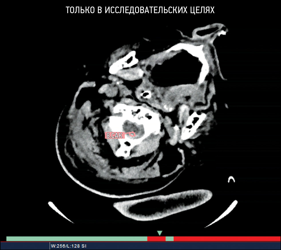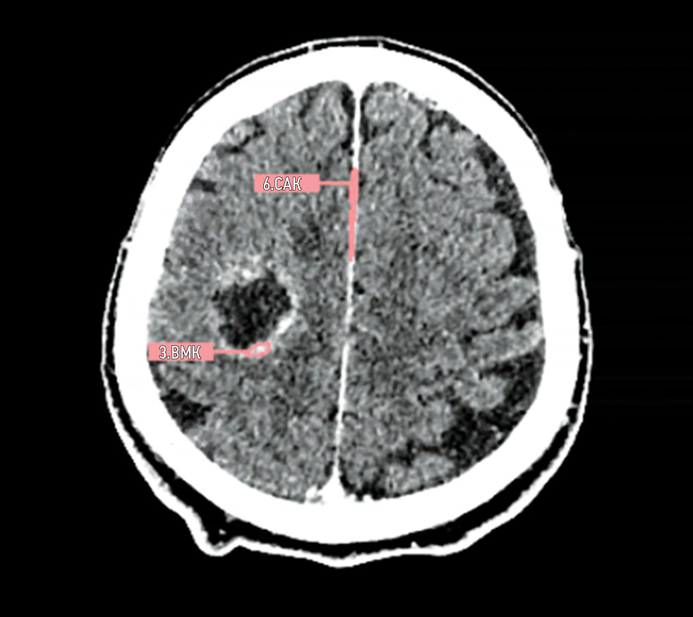 Fig. 6. Defect: off-target markings, contrast-enhanced computed tomography instead of native computed tomography. Modality: computed tomography.
