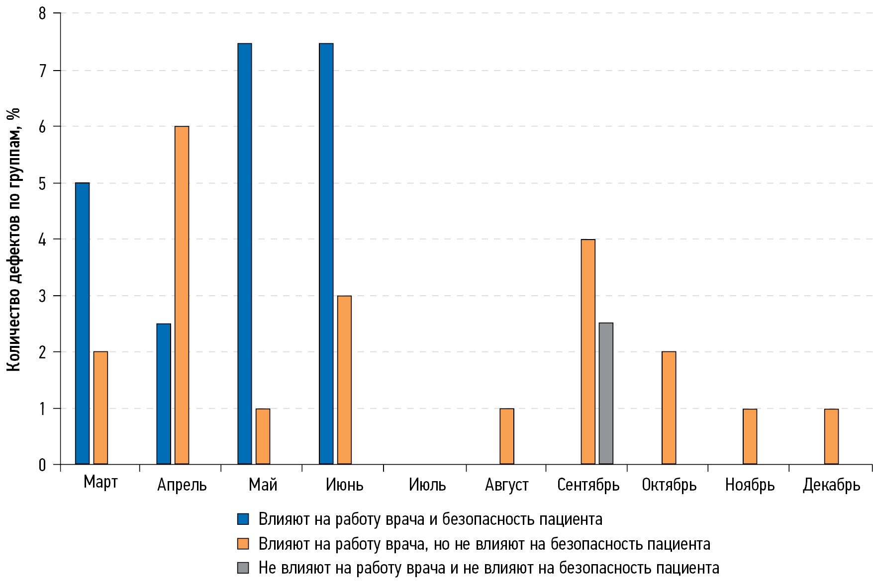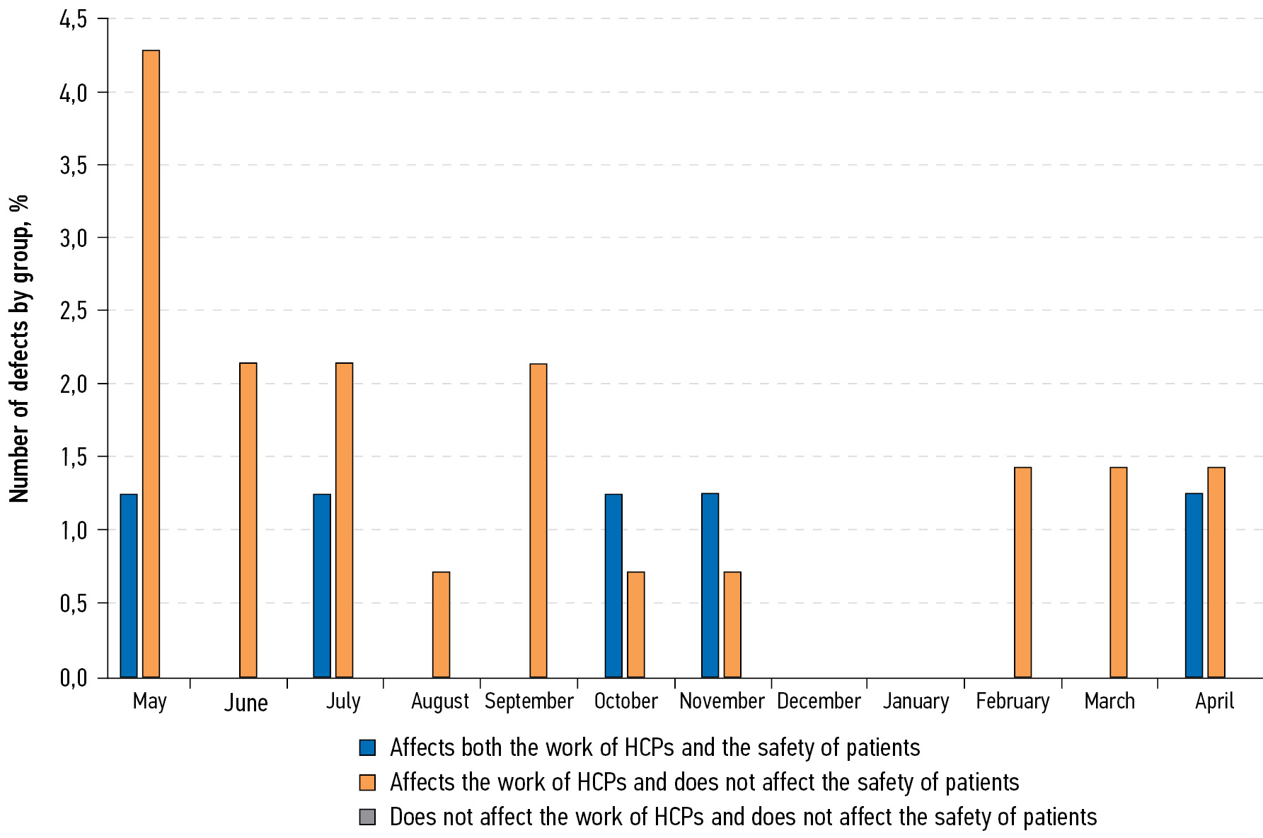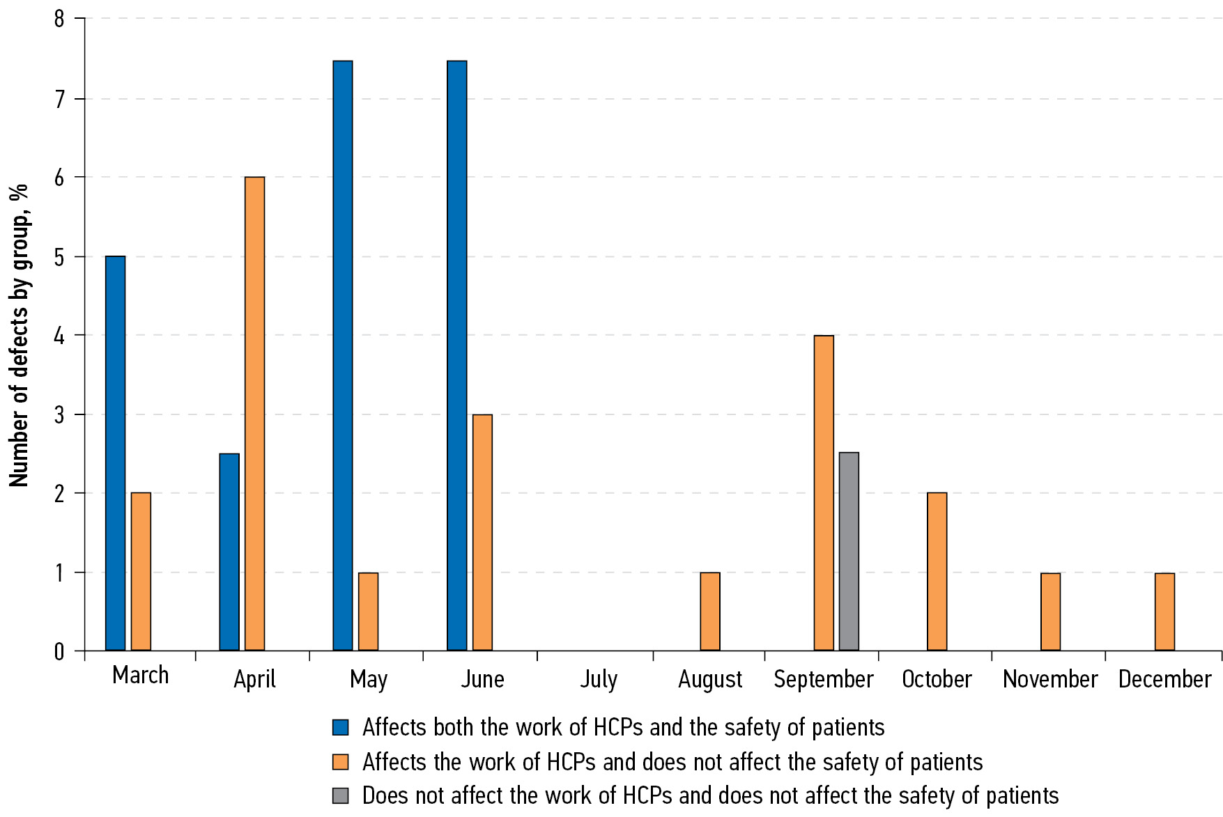 - Defects that do not affect the safety of patients or the work of HCPs: minor defects that need to be removed to make the work of HCPs more convenient, intuitive, and efficient. This group includes D5, D6, and D8 defects.