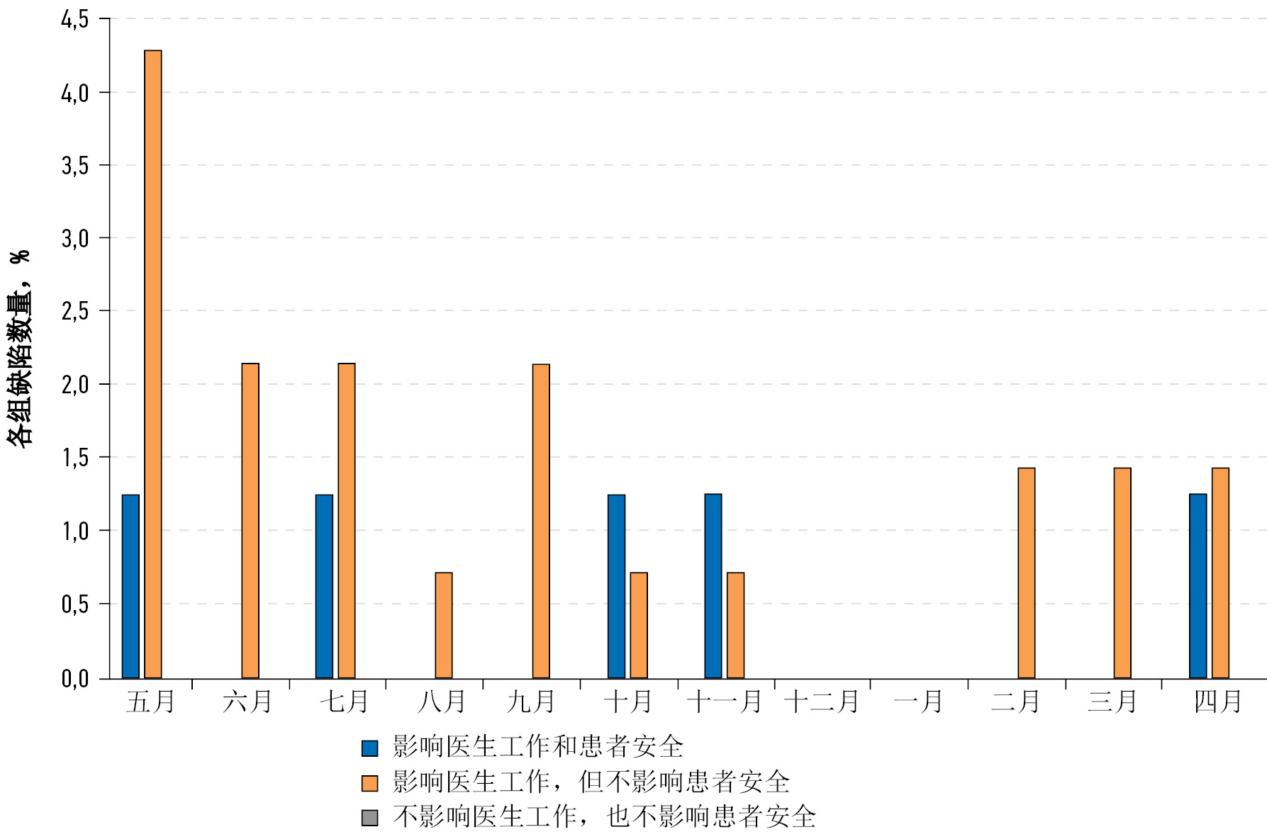 For the mammography modality (Figure 7), defects that affect patient safety and HCP work were no longer detected after June because of the AI-based software update. Furthermore, defects that affect HCP work but do not affect patient safety tend to decrease by the end of the study period.