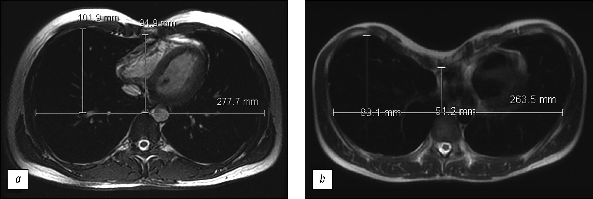Magnetic resonance imaging (MRI) is also used to verify the presence of a deformity and evaluate possible compression of the heart [3]. MRI does not involve radiation exposure and offers comparable diagnostic information regarding the sternum and ribs to CT. Nevertheless, there are only a limited number of sources that provide comprehensive information regarding the informative value of MRI in evaluating the parameters required for surgical planning [4].