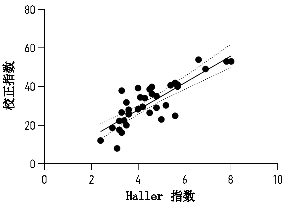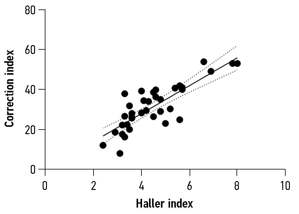 Fig. 4. Correlation data for the Haller index and the correction index (P < 0.05).