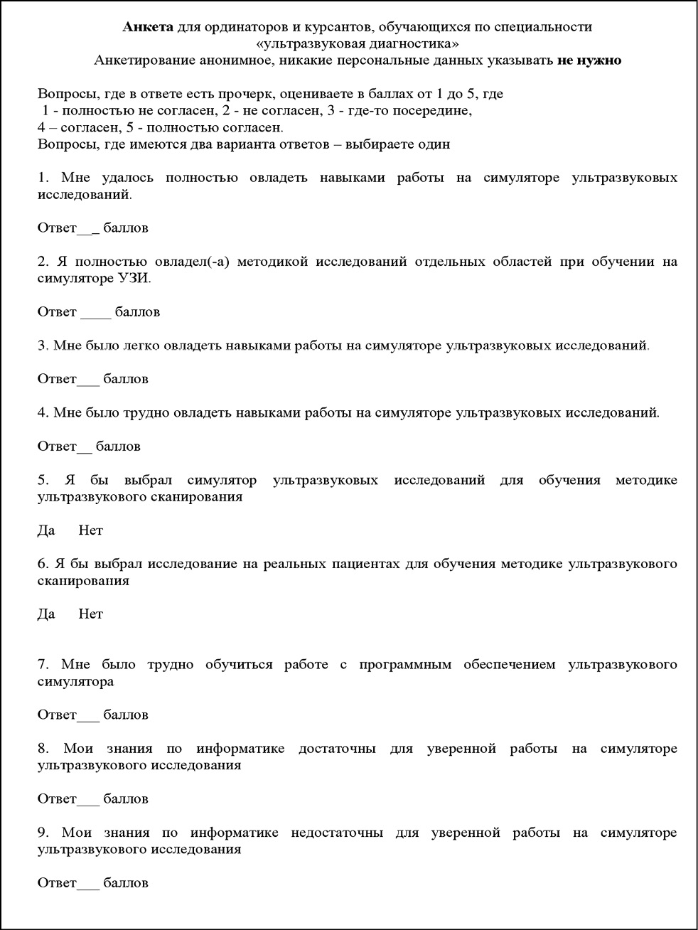 6. Fig. 5. Tests to assess the results of mastering ultrasound scanning techniques.