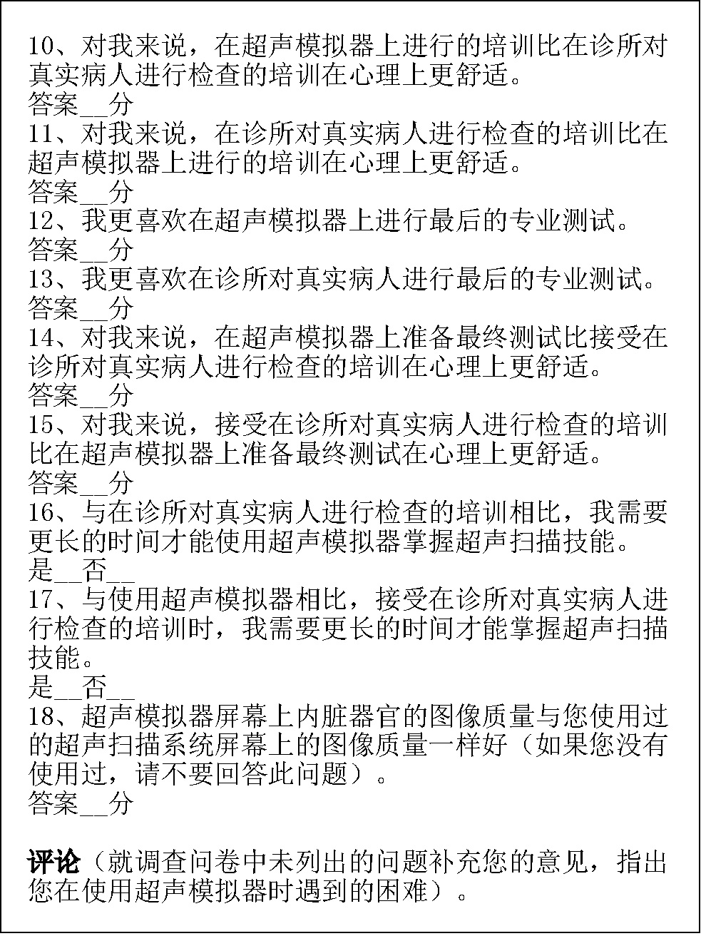 Psychological comfort during training in diagnostic ultrasonography using the simulator