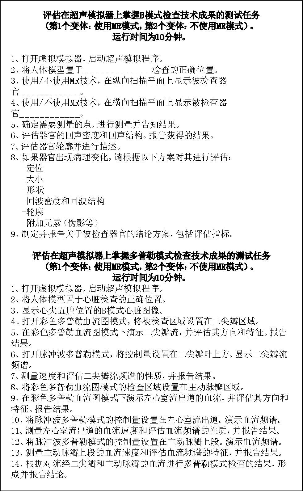 Fig. 5. Tests to assess the results of mastering ultrasound scanning techniques.