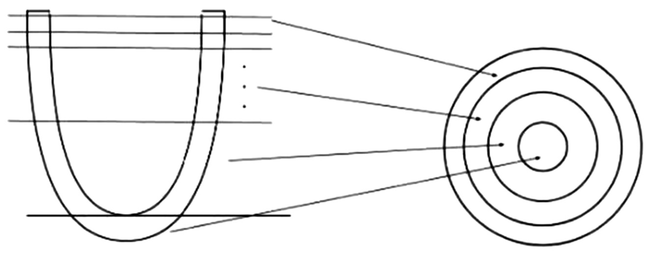 In this study, a method for generating a polar map that is similar to the commercial QPS software was devised. The LV image is manually segmented, the main axis is determined, and the image is rotated. The epicardial and endocardial surfaces specified in the phantom were used to eliminate delineation errors. The LV is moved to a separate file and divided into layers along the long axis (Fig. 7). Subsequently, data on cumulative activity (pulse/voxel) in each layer are collected. The distribution of cumulative activity proportional to the degree of myocardial perfusion was recorded sequentially in each layer as circular profiles. The data collection process can be divided into two nested cycles. In the first cycle, there is a descent through the layers from the top of the LV (basal part) to the bottom (apical part). In the second cycle, data on cumulative activity in each sector of the cross-section are collected. The mean value was calculated based on the thickness of the myocardium and in each sector of the slice. According to Turco et al. [20], this method of calculating cumulative activity provides better accuracy than using the uptake value based on the maximum value in the myocardium. The number of sectors into which each slice is divided is calculated automatically based on the shape and size of the LV. As shown in Fig. 7, the cumulative activity values in each cross-section are projected onto the polar diagram as concentric rings, with the basal part of the LV corresponding to the outer ring and the apical part corresponding to the inner ring.