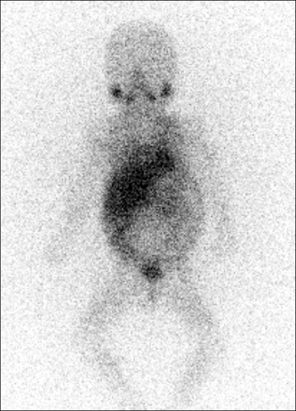 Fig. 3. Metaiodobenzylguanidine scintigraphy dated October 30, 2020. There was no indication of radiopharmaceutical uptake.