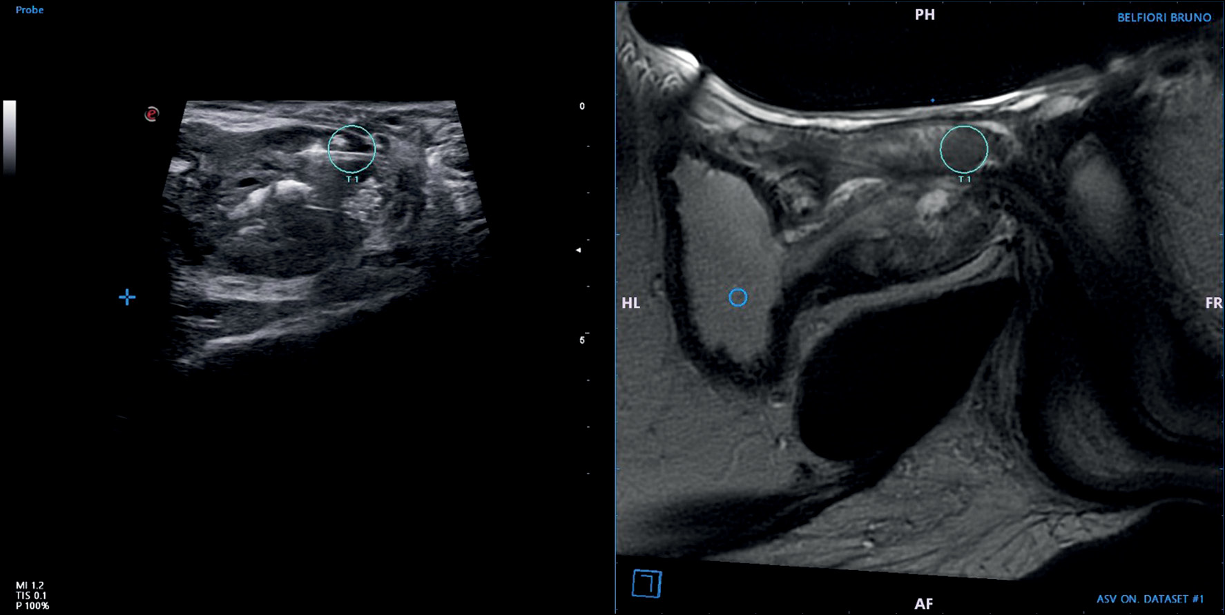 Cognitive fusion is performed easily and rapidly and does not require any additional equipment other than an MRI and a standard TRUS facility. The US operator does not need any additional training beyond the standard TRUS-guided biopsy. Cognitive fusion is based on the sonographer’s ability to localize the region of interest by imaging its location within the prostate after viewing the worrisome lesion on MRI [12].