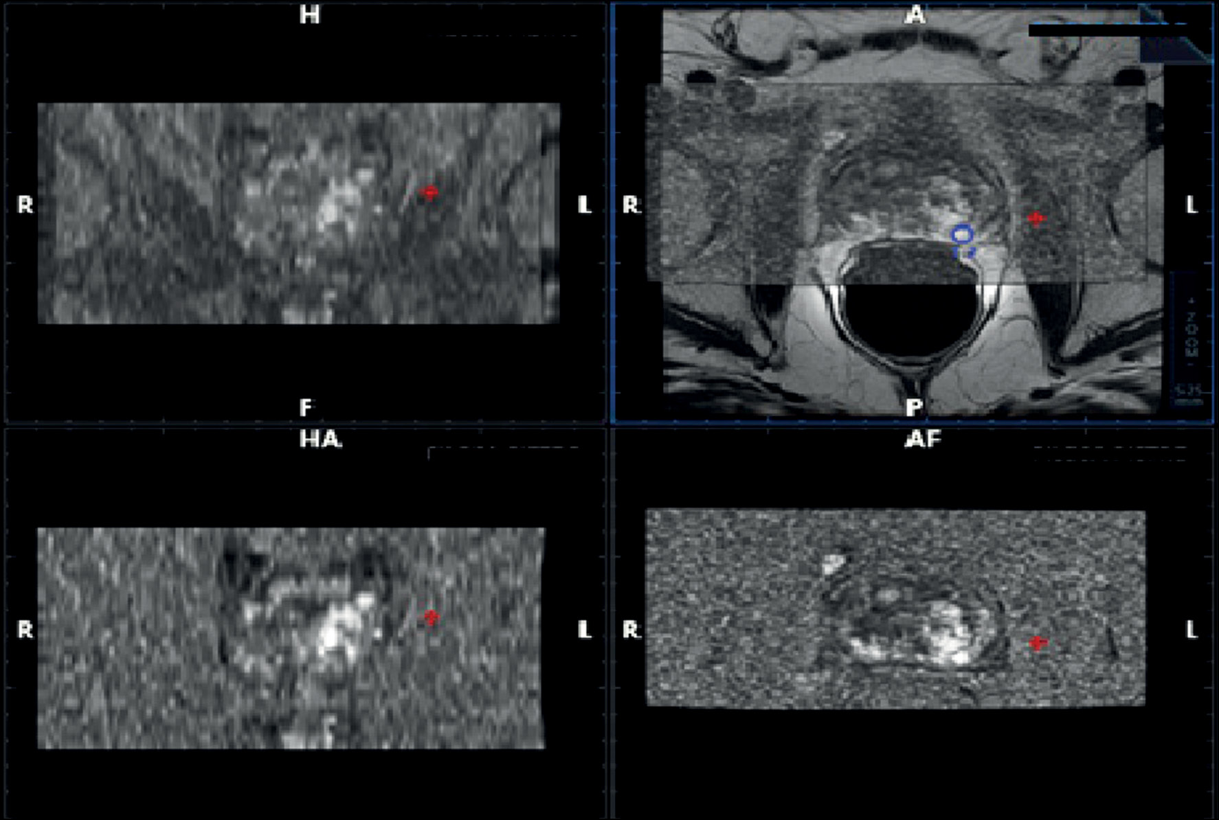 With these premises, the role of multiparametric MRI (mpMRI) has become central not only in the diagnosis of PCa but also in biopsy as a tool for correct staging and assessment of tumor extension (Gleason score [GS]).