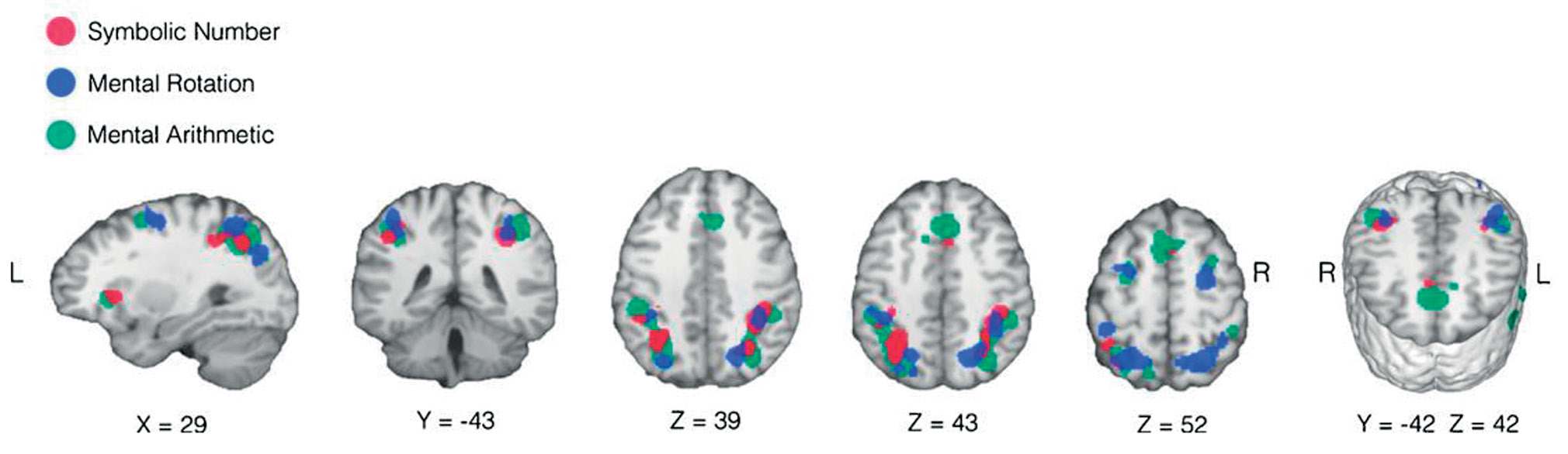 Рис. 6. Карта активации мозга арифметических процессов, Z. Hawes и соавт. [21], с изменениями.