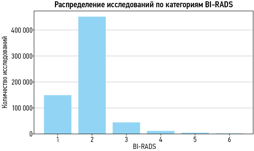 During data preprocessing, lines lacking radiologist descriptions and/or AI service results were excluded. Moreover, test results from male patients, female patients aged <40 years or >100 years, and examinations in which the radiologist’s conclusion did not correspond to BI-RADS categories 1–6 or any AI service mentioned above were excluded from the dataset.