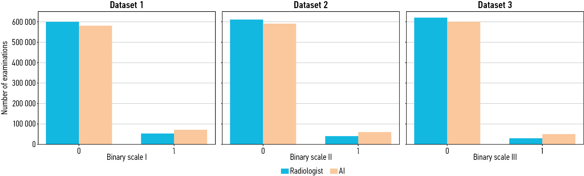 RESULTS: A comparative analysis showed that the use of a binary scale for evaluating digital mammography affects the number of detected abnormalities and accuracy of AI results. In addition, diagnostic accuracy was found to be threshold dependent. AI Service 1 in version 3 had the best performance, as confirmed by most diagnostic accuracy parameters.