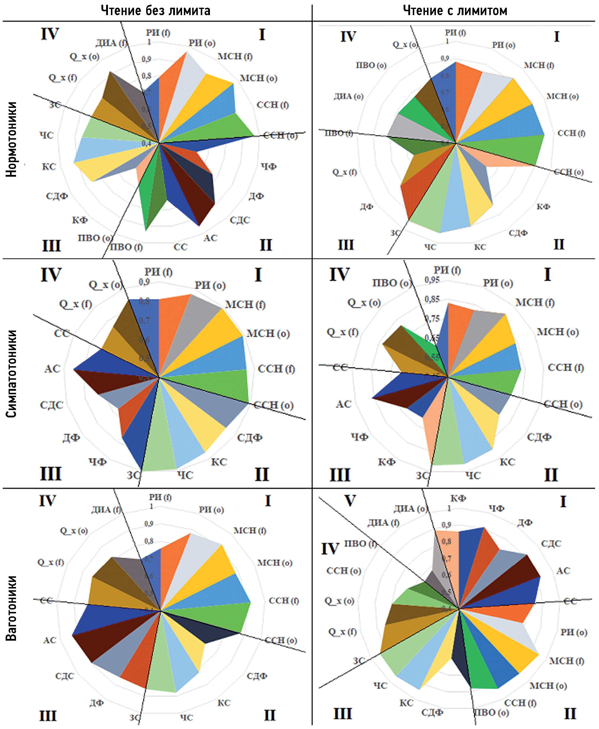 Установлено, что у нормотоников эффективность выполнения когнитивной задачи без ограничения времени выше по сравнению с симпатотониками и ваготониками (p <0,05). При введении лимитирующего временного фактора более успешно с задачей справились симпатотоники (p <0,05).