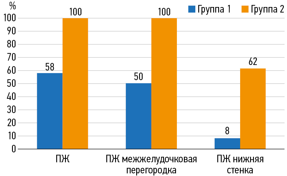Statistical analysis methods: The qualitative parameters were compared using the χ2 or Fisher’s exact test. The quantitative parameters were compared using the nonparametric Mann–Whitney test. The results were presented as Me [Q25; Q75], where Me is the median and Q25 and Q75 are the 25th and 75th percentiles, respectively. Differences were considered significant at p < 0.05.