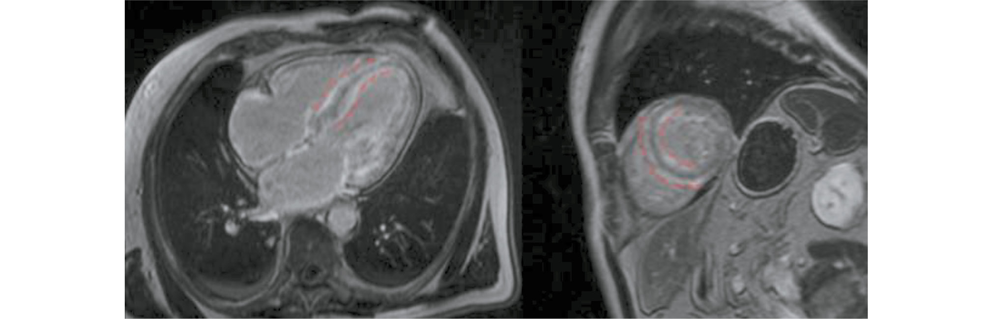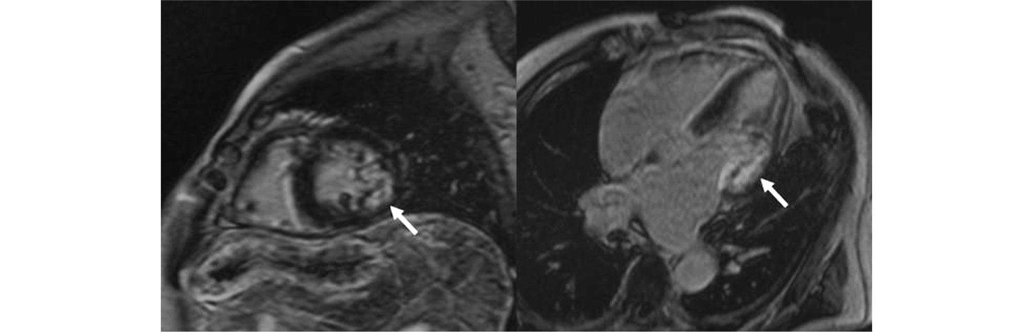 - A cine-MRI in the steady-state free precession mode in two-, three-, and four-chamber views and a series of short-axis scans from the base to the apex of the left ventricle (LV).