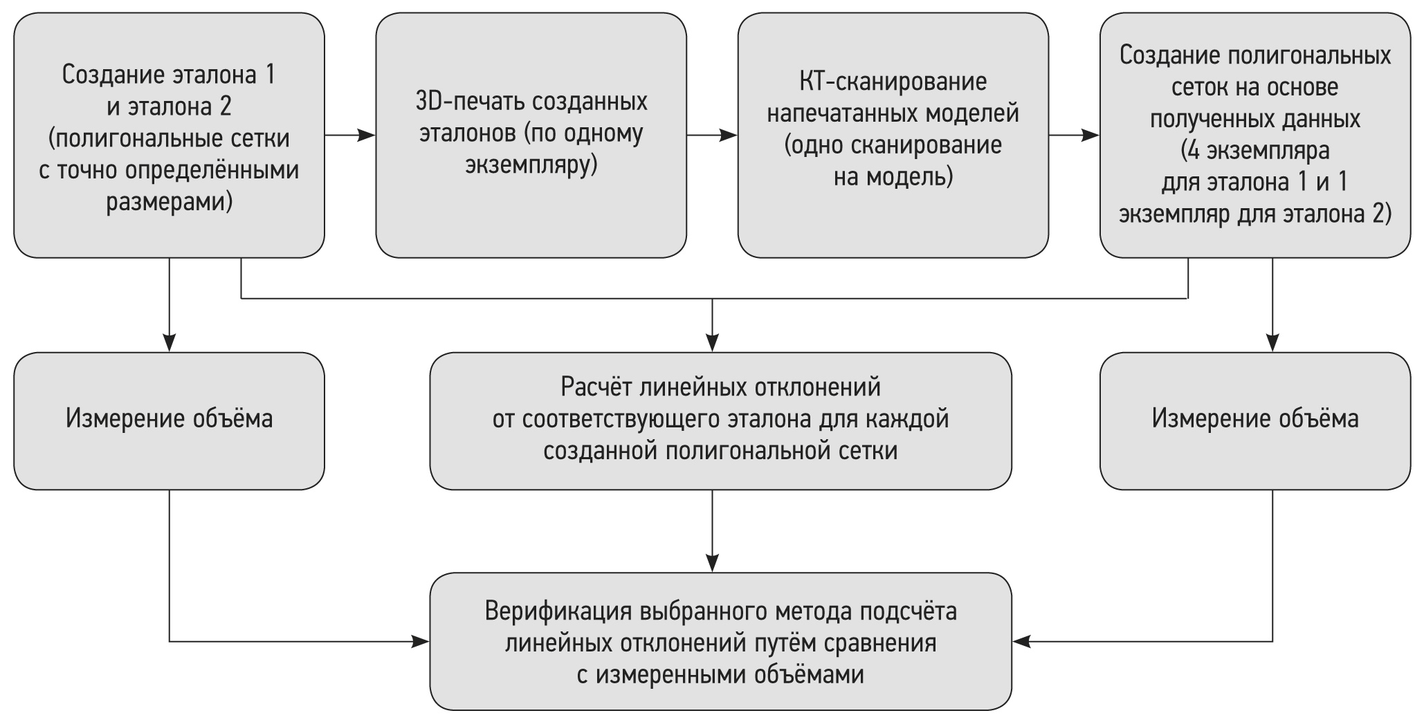 RESULTS: The volume of reproduced models exceeded the volume of respective reference models by 1%–27%. The average point cloud linear deviation values of reproduced models from the reference ones were 0.03–0.41 mm. A significant correlation between integral sums of linear deviations and changes in the volume of reproduced models was shown using Spearman's rank correlation coefficient (ρ = 0.83; temp = 5.27, p=0.05).