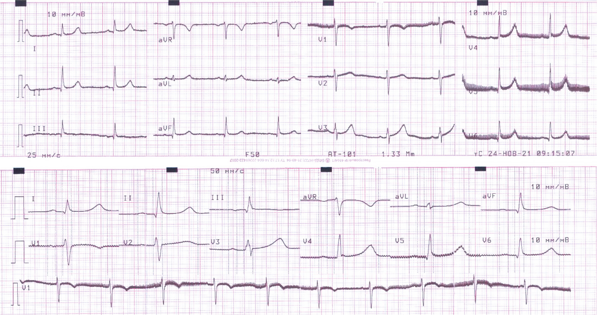 По данным электрокардиографии (ЭКГ) выявлено: