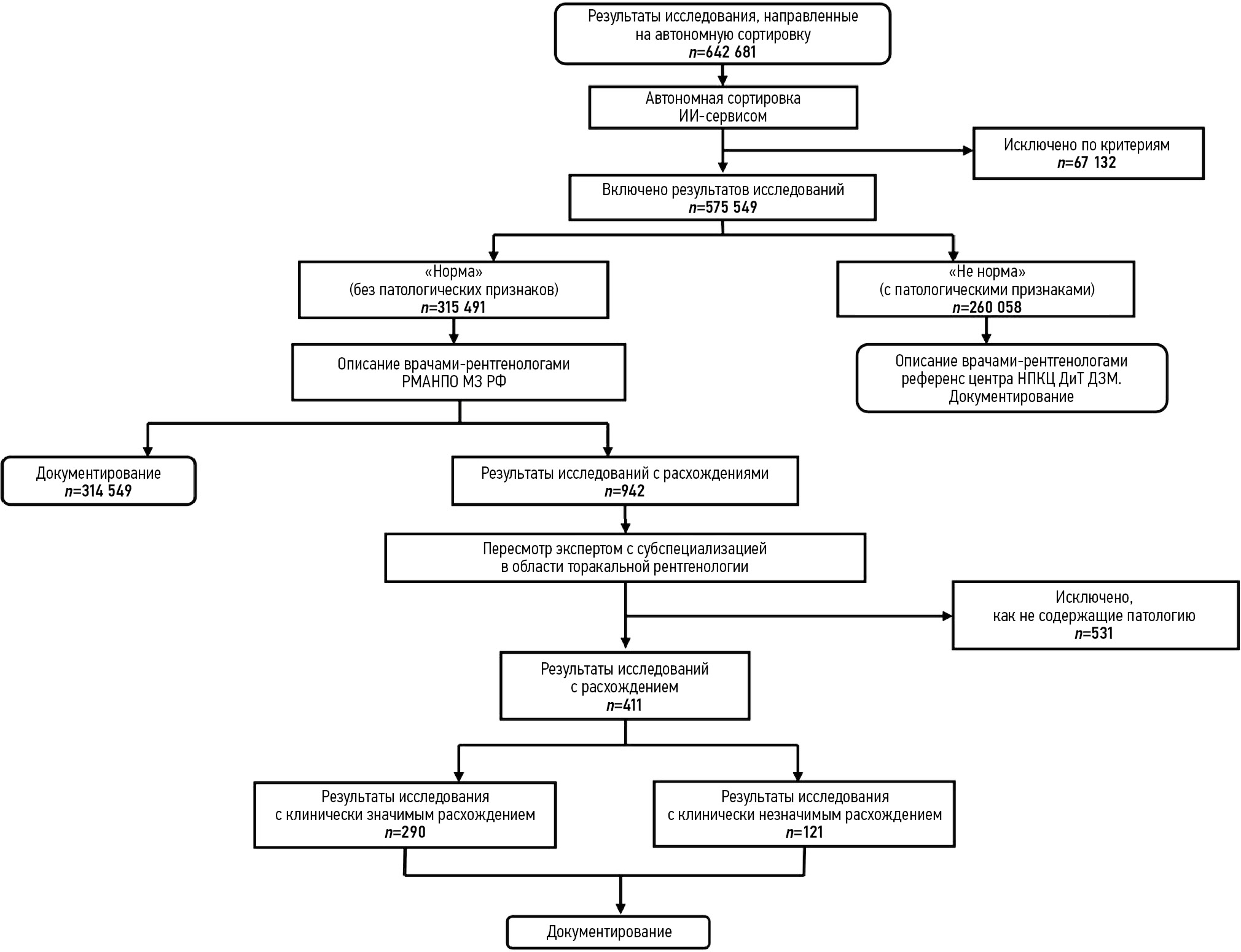 MATERIALS AND METHODS: A prospective multicenter diagnostic study was conducted on the safety and quality of autonomous sorting of results from preventive radiological examinations of chest organs. Analytical and statistical methods of scientific inquiry were used.