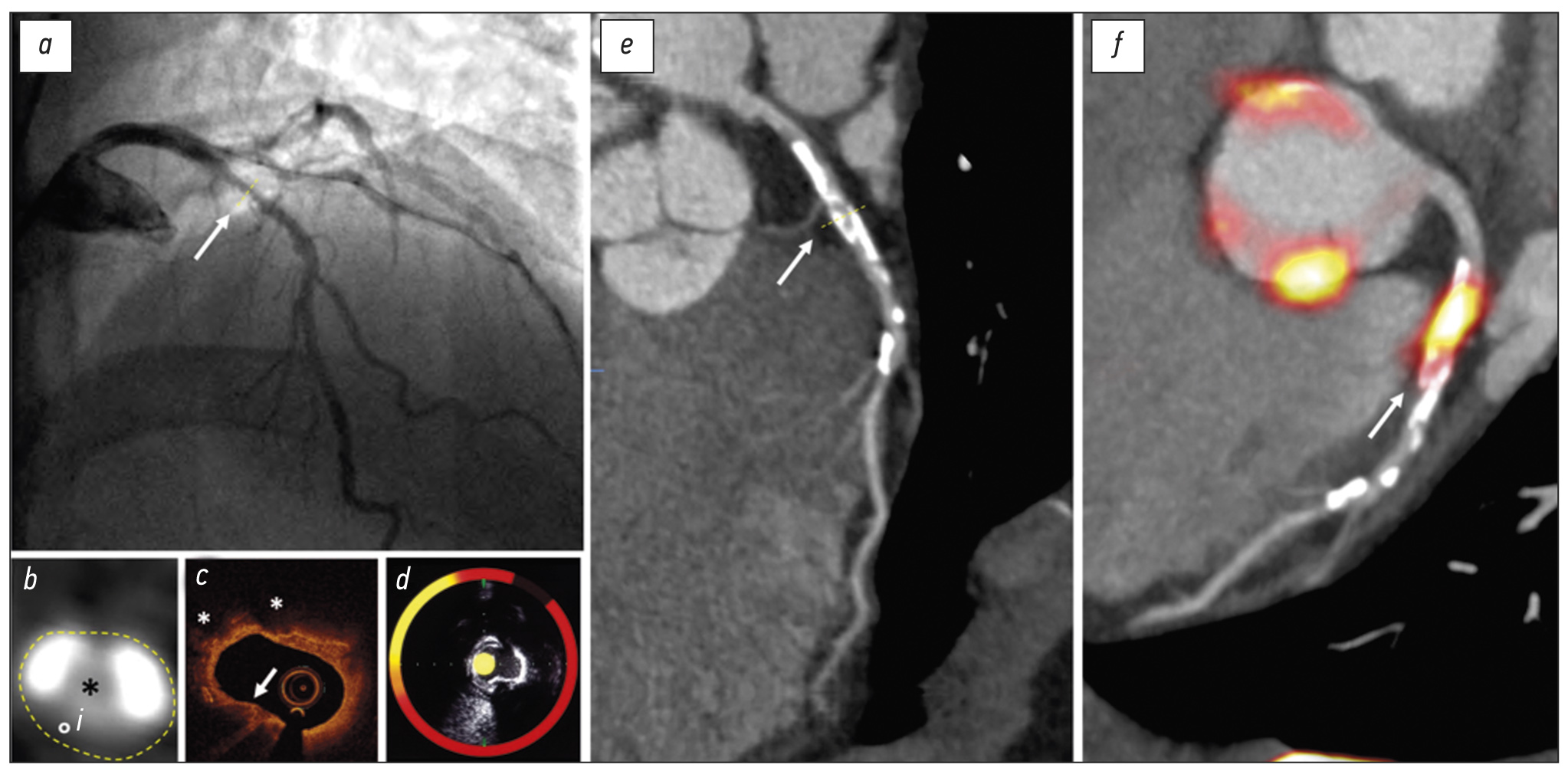 Fig. 2. Imaging of coronary atherosclerosis in a patient with myocardial infarction without ST segment elevation.