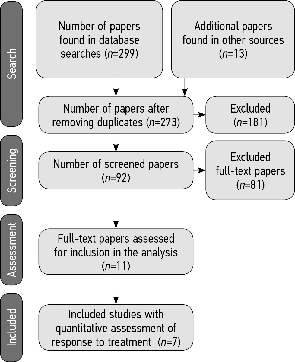 At the first stage, 273 sources were selected after sorting out duplicates (31) and animal studies (8). Next, 181 publications were sorted out after assessment of proceedings and abstracts at the screening stage. After checking full-text versions of the papers for inclusion criteria, 11 sources were remained and included in this review (Table).