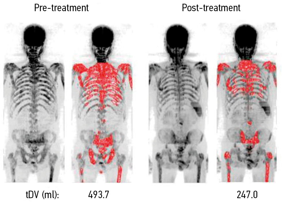 Bone metastases lead to deterioration in the physical, functional, and emotional state of patients as well as a shortening in life expectancy. Although oligometastatic lesions can possibly be treated through radical therapy, the prognosis is much worse in disseminated lesions, with treatment becomes palliative (aimed at improving the overall quality of life of patients). Advancements in chemotherapy, hormone therapy and aggressive multimodal therapy allow for individualization and standardization on the assessment of the achieved therapeutic effect [4, 5].