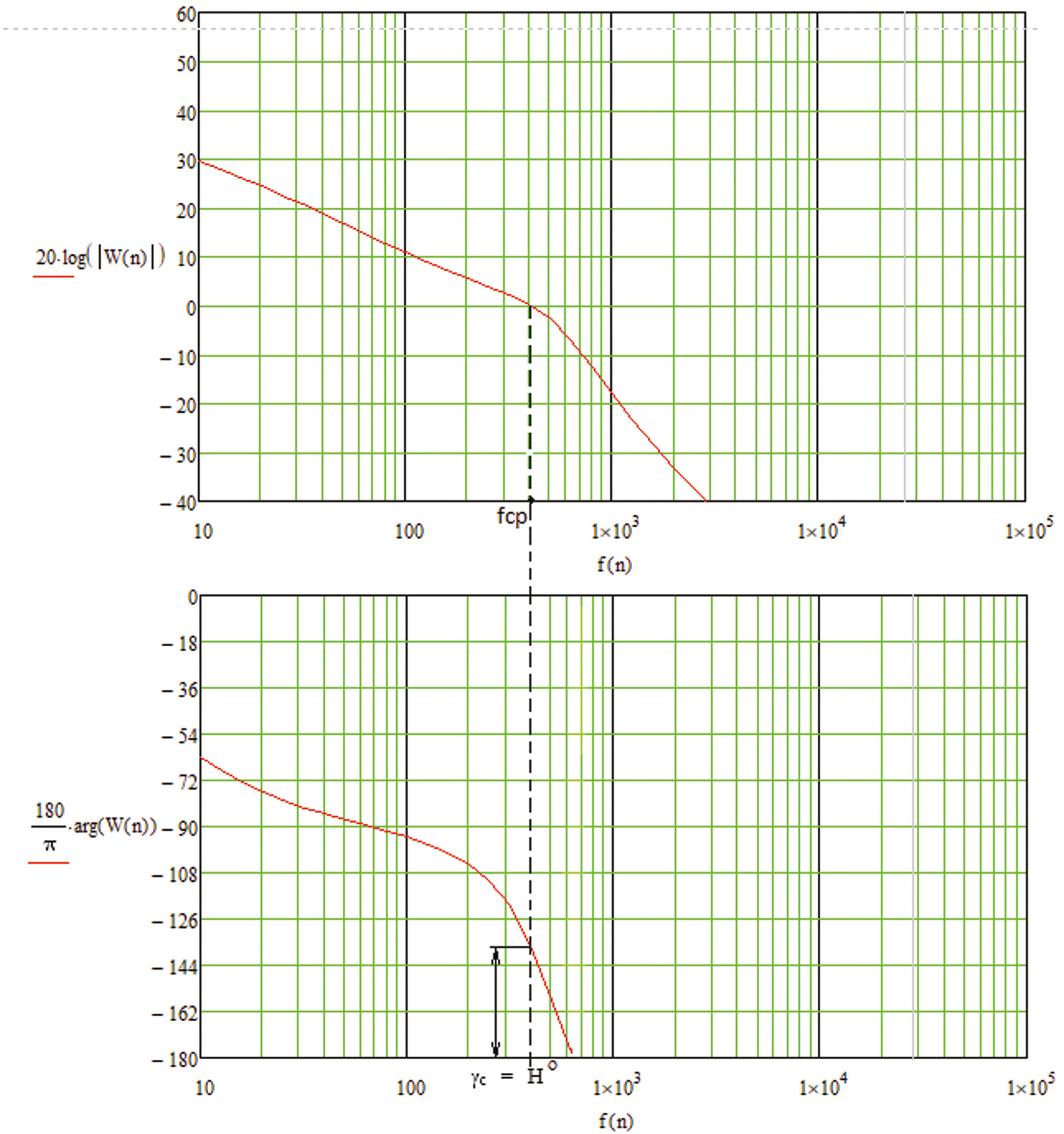 т. е. стабилизатор устойчив, запас устойчивости по фазе: γс = H° = 40°.